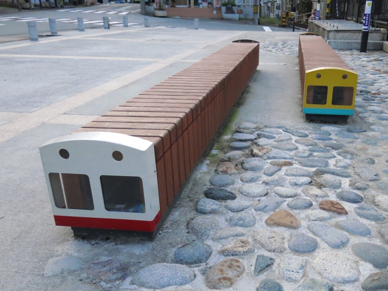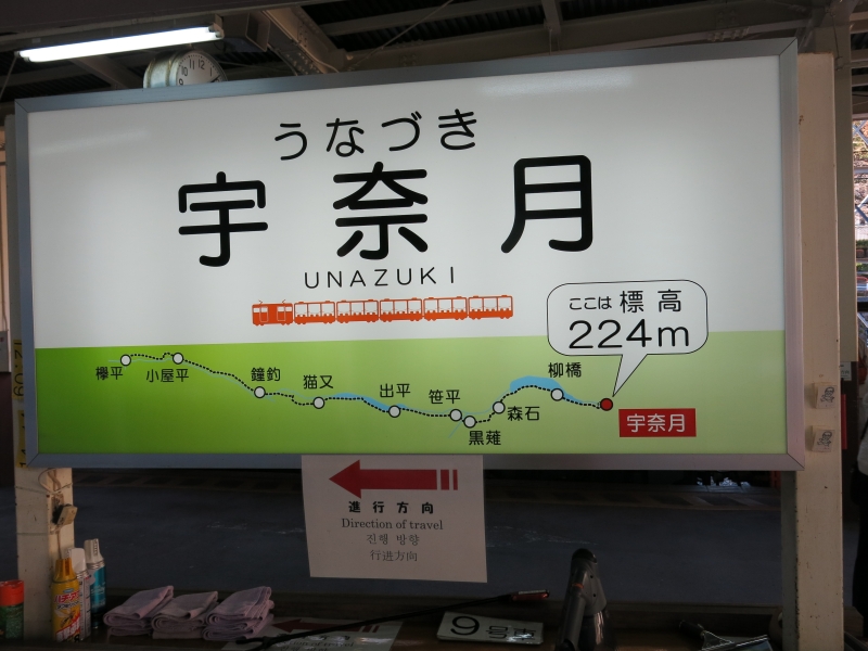 往路は右側に席を取った方が景色がよく見えます。道中、車内アナウンスで沿線の解説が流れますが、ナレーションは女優の室井滋さんです。