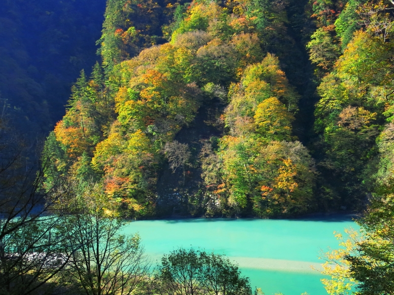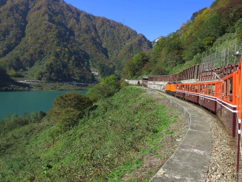 黒部川沿いにゴトゴト走るトロッコ電車の車窓からは、黒部峡谷のダイナミックな景観を楽しめます。