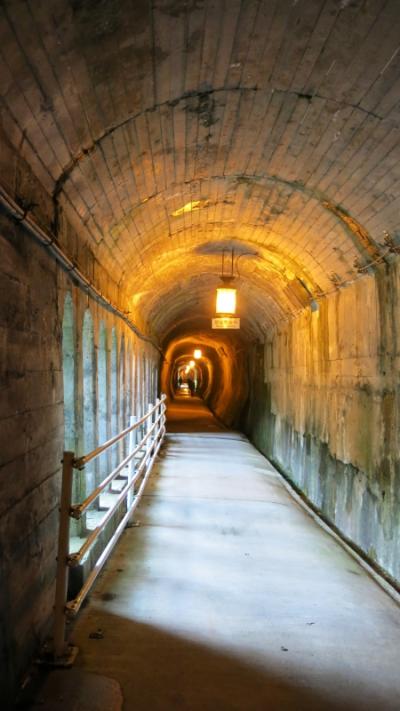 職員のみが使える点検作業の通路「監査廊」は、事前の申し込みで見学可能なようです。対岸の絶壁に張り付くような道を、見学者と思しきグループがヘルメットをかぶって歩いていました。- 旅行時期