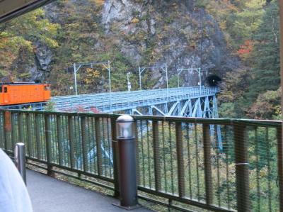 散歩がてら宇奈月駅から歩いて行ってみましたが、車窓から眺めるより迫力があります。ダム周辺の湧き水の豊富な水量には驚きました。