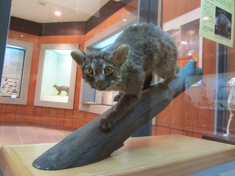 西表島で見られる生物の情報を展示しています。中でもイリオモテヤマネコに関する情報はさすがに豊富で、剥製のほか骨格標本、生態、保護された個体の記録、目撃情報等々が開示されています。