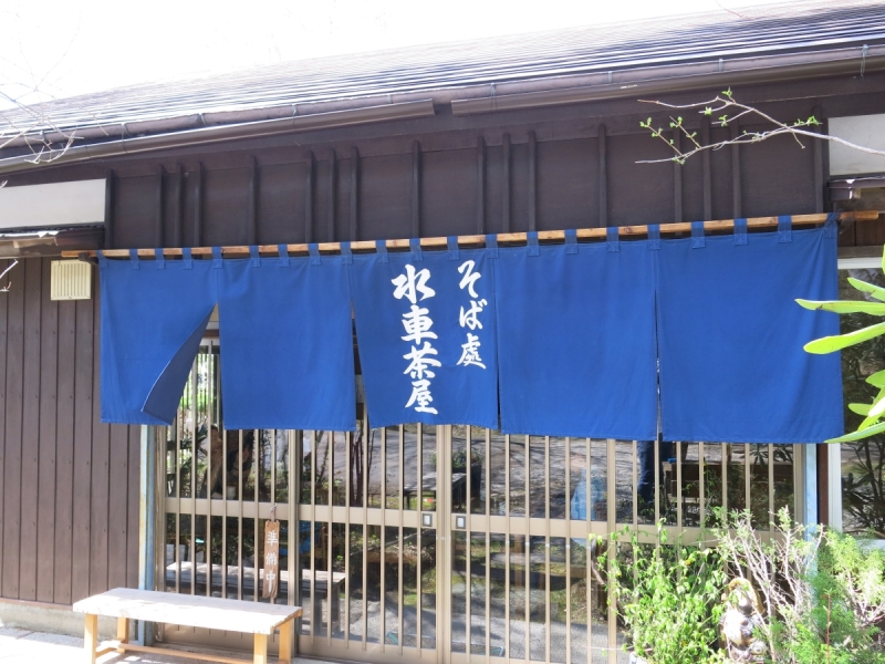 このエリアの競争が激しいであろう蕎麦屋は、古民家風や清潔感溢れる造りだったりしますが、この店はそのどちらでもなく、「ただ古い」と言った感じの店構え。名前の通り、店の前には水車があります。