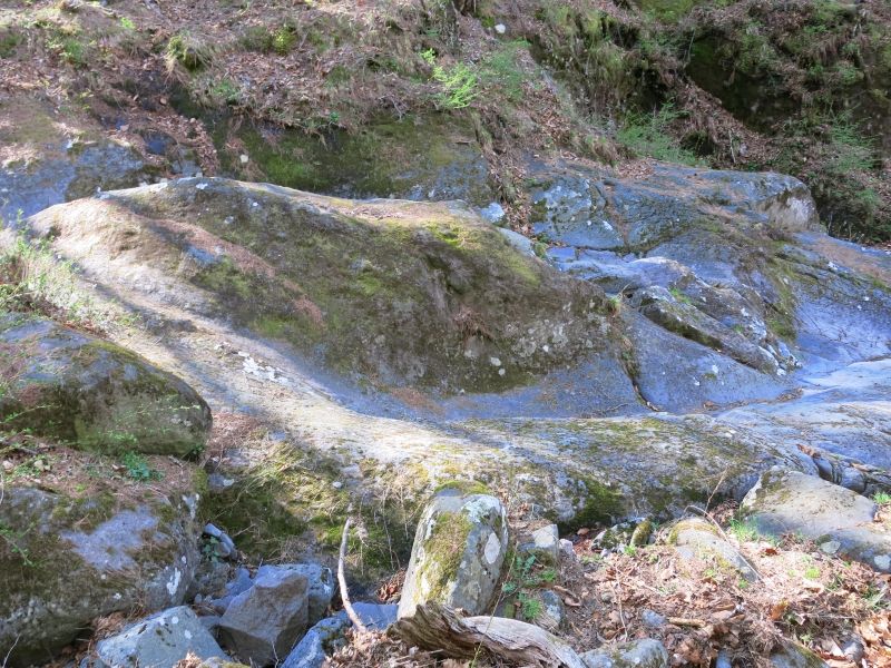 確かに川の流れに洗われた滑らかな一枚岩がありますが、私が行った時は残念なことに水が枯れていました。こうなると、景観としてはかなり淋しいものになってしまいます。