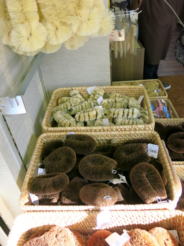 頑丈でごつい帆布が、カラフルで洒落たバッグに変身、店内にきれいに陳列されています。