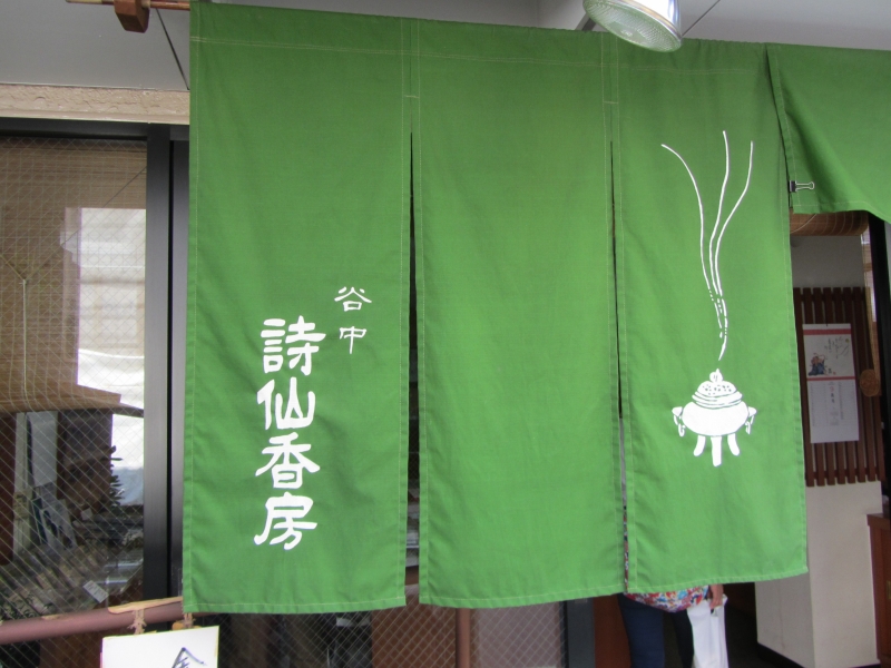 谷中は寺院が多いことでも有名ですが、その寺の密集地に洒落た門構えのお香の店があります。