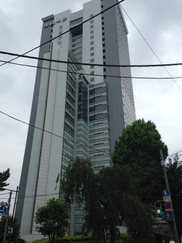 市ヶ谷からは徒歩10分弱。これが大学か?というほどの高層ビルです。『ボアソナードタワー』なる名前が付いていますが、もう少しすっきりした名称にできなかったのでしょうか?