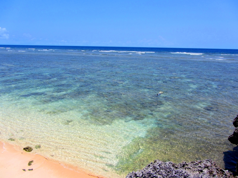 仲本海岸が今ひとつだったので、ここでシュノーケルをしましたが、海岸からかなり離れないと魚影は望めません。