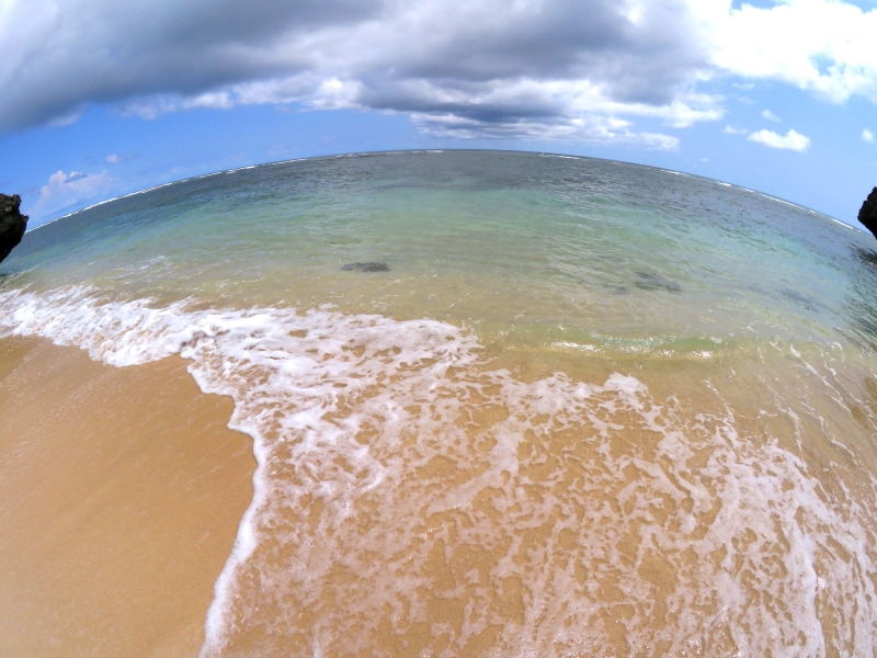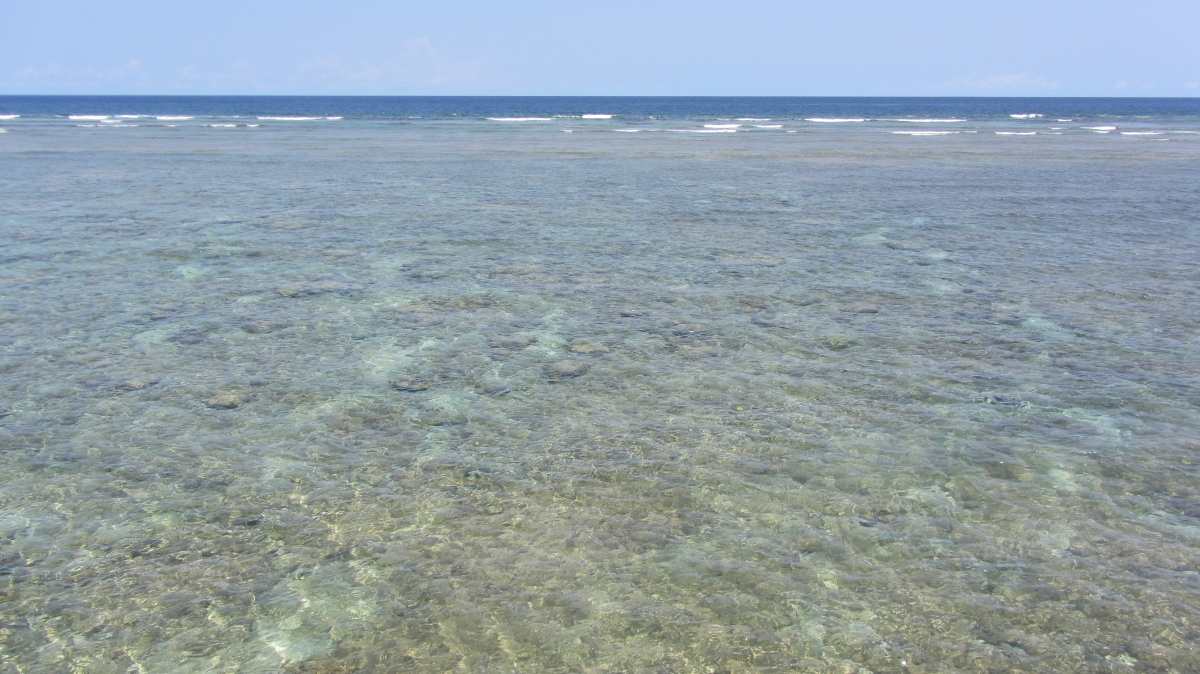 西向きなので夕日ウォッチングのポイントとのことですが、ビーチは遠浅、砂地のため、魚影はほとんどなし、シュノーケルには不適です。