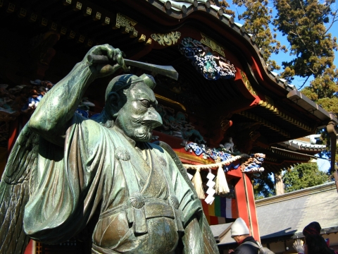 ムササビは夜行性、あたりが暗くなるとおもむろに巣から這い出して空へ滑空。