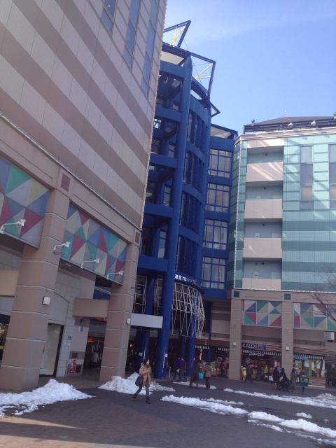 駅前のだだっ広い広場の一画にあり、周囲の大きな施設と比べるとかなり小ぶり。