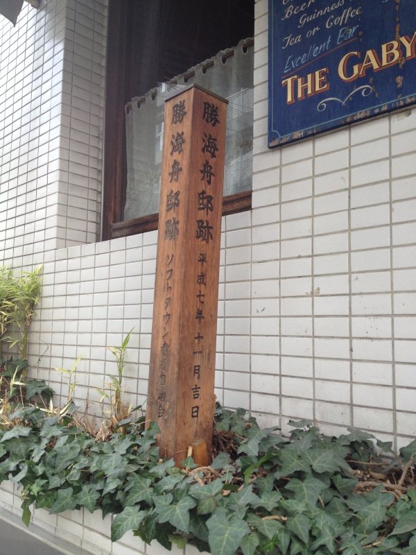 説明板には『海舟を刺殺しようとして訪れた旧土佐藩士坂本龍馬らに、世界情勢を説いて決意を変えさせ、逆に熱心な門下生に育てて、明治維新への流れに重要な転機を与えることになったのもこの場所である。』と記されています。