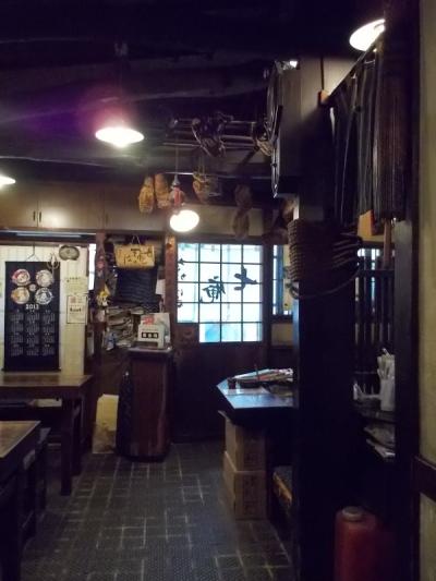 門構えも店内も、古民家(と言うと聞こえは良いのですが、単に「古い」と言う意味)の風情で、店内も決して洒落ていません。むしろ雑然としており、囲炉裏があるのには驚かされます。