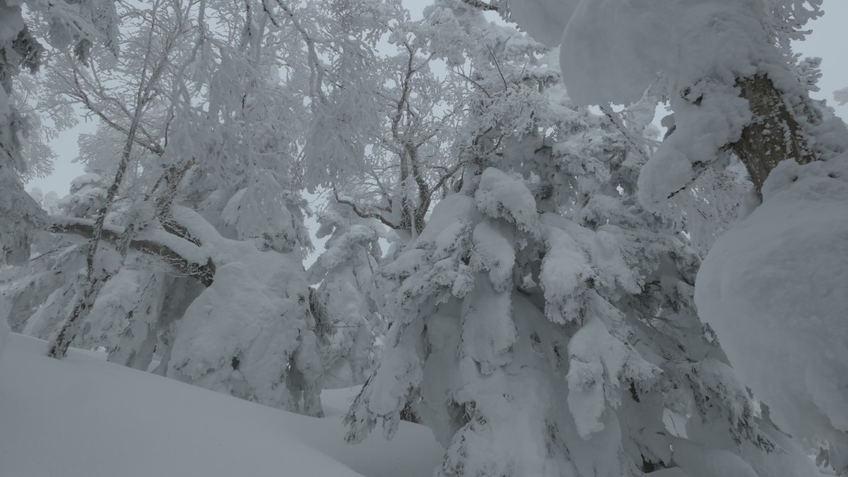 今回2度目の冬季挑戦でしたが、またしてもホワイトアウトで途中撤退を余儀なくされました。ロープウェイ山頂駅は即ゲレンデになっており、スタート時点ではまずまずの天候でしたが、リフトを3基乗り継いだらガスで真っ白、森林限界を超えると風もあって、トレースを見失うほどでした。