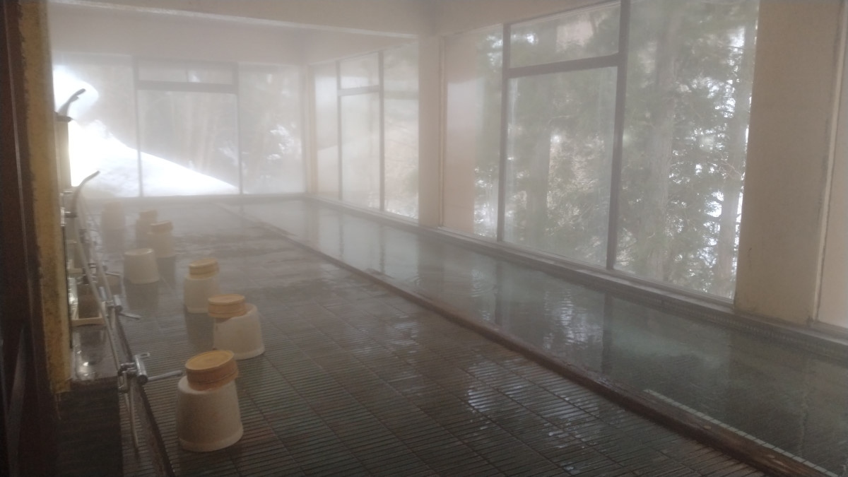 「オリンピック風呂」と名付けられた温泉(内風呂)は、浴槽が細長くちょっと変わった風呂でしたが、やや熱めで冷えた体がいっぺんに温まります。