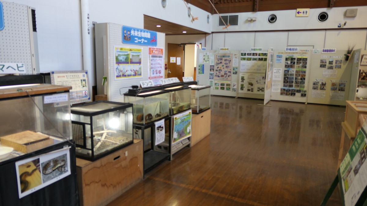 1Fには園内で見られる生物・植物の展示(パネルも含む)があります。