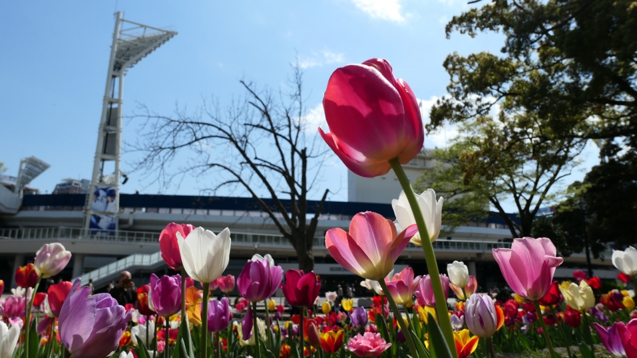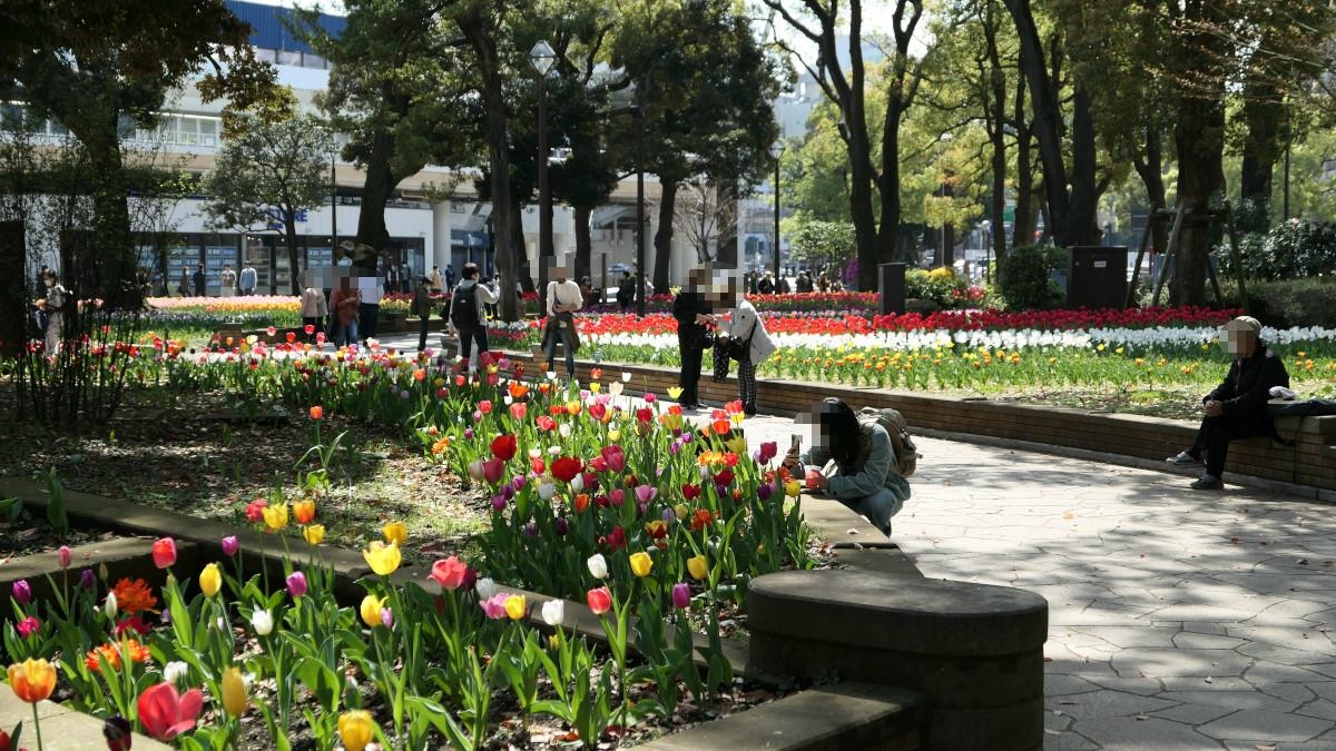 毎年3月になると、園内の花壇のほぼすべてがチューリップで埋め尽くされ、その見事な丹精に多くの人が集まります。