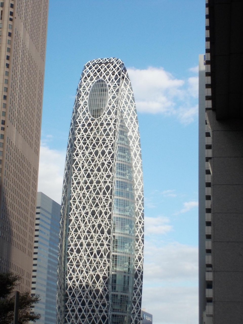 新宿駅西口の高層ビル群の中でもひときわ異彩を放つ形をしたビルです。