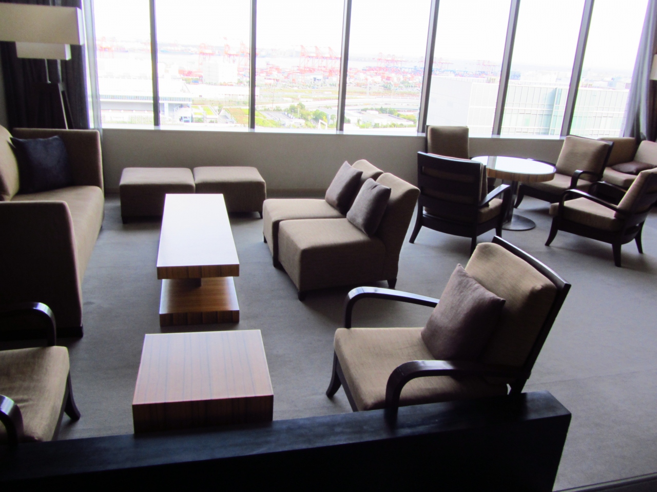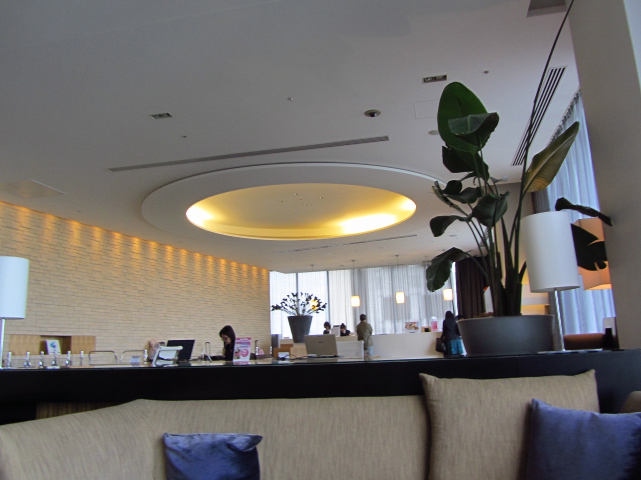 りんかい線品川シーサイド駅の真上にあり、地下駅からぬれずにチェックインすることができます。ビル16階から上が客室になっており、フロントロビーは海側が大きく開けた窓になっており、東京港の眺めはなかなかのものです。