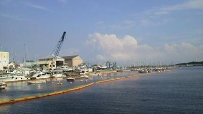 アウトレットモールの周辺を取り囲むようにしてヨットハーバーの施設が並び、多くのヨットやクルーザーが係留されています。