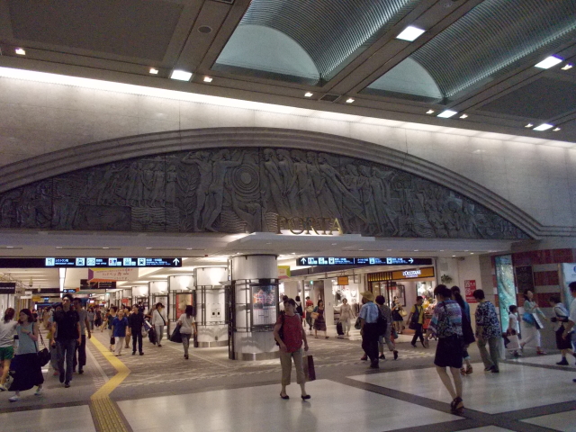 同じそごうでも、地下入口のからくり時計には時報のたびに人が集まっていたのに比べ、こちらは寂しい限りです。