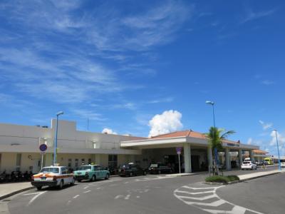 ターミナルビルの3階部分は、狭いながらも展望台になっており、空港が一望できるほか、反対側には白保の海が見えます。