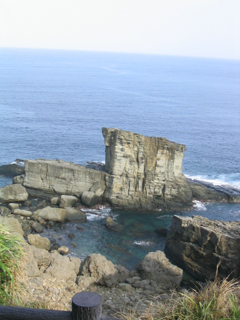 絶海と言う表現がぴったりの風景の中で、海の中に屹立した岩。なんとも不思議な光景。