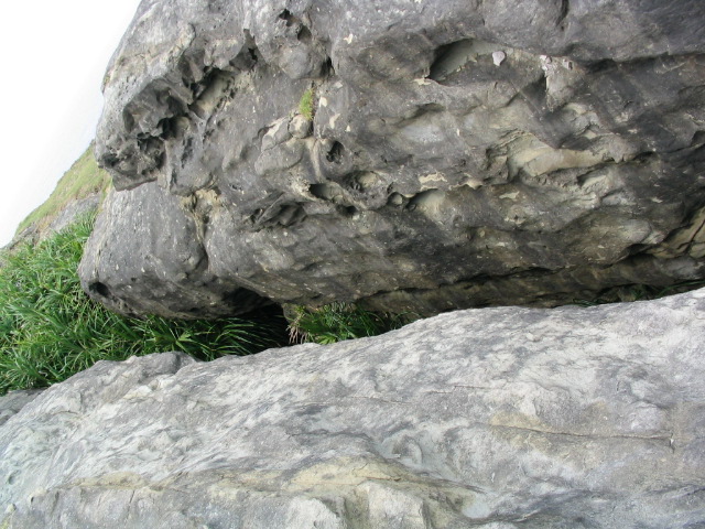 海側から見ると人の顔に見えるとの話も。さらに周辺海域から人型の石象のようなものが発見されているとのこと。