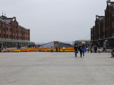 明治44年(1911)に開通した臨港鉄道の線路跡が、今は「汽車道」という名前で散策路になっている。その名の通り、路面にはそのレール跡が残されている。