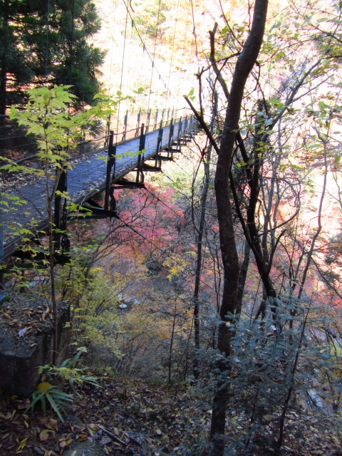 奥多摩湖には、浮橋が2つ架けられています。通称ドラム缶橋と呼ばれるこの橋は、ドラム缶状の樹脂と金属の素材が用いられていますが、昔は本当のドラム缶を利用していたそうです。