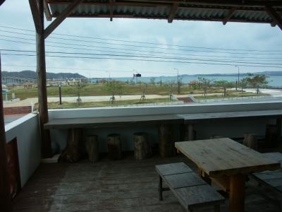 1階が駐車スペース、2階が店舗ですが、大きめのテラスがあり、ここで食事もできます。