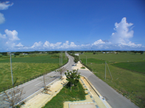 頂上まで行くと、宮里海岸が見渡せます。ただし、足場はかなり悪いので、ビーチサンダルだと相当な注意が必要です。