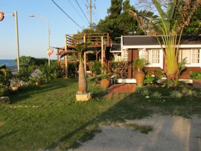大宜味村、国道58号線にあるログハウス風のカフェ。