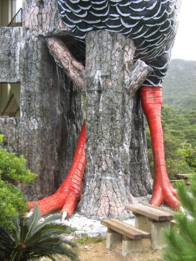 辺戸岬から見ると、周囲の景観を全く無視して木立の中から“にょきっ”と立っている。
