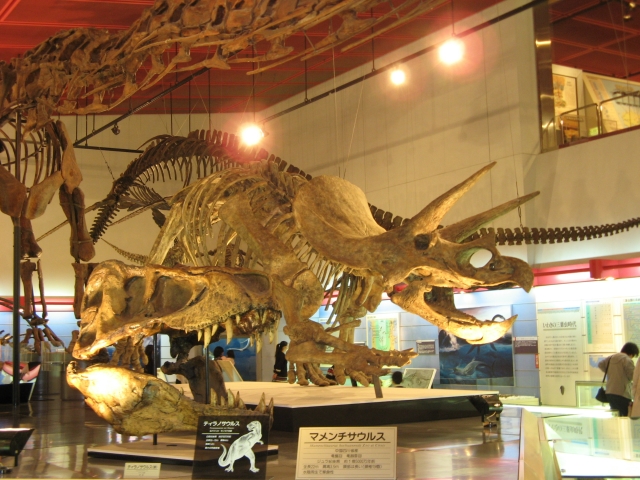 建物の入口には巨大な恐竜のオブジェ、館内にも骨格標本が沢山展示されているほか、炭鉱の町として栄えた頃の、庶民の生活や炭鉱内部の様子を模型にして展示しており、点数も多く見応えがある。