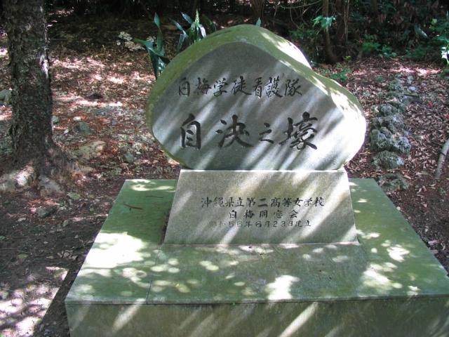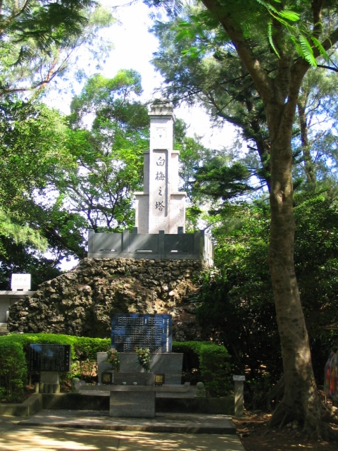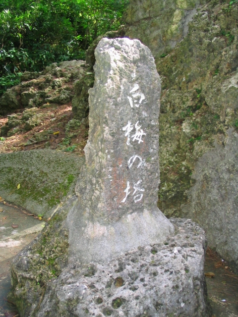 八重瀬岳の山部隊野戦病院にいた白梅学徒は6月4日の病院解散後、この地に追いつめられたグループがあった。碑の近くにある自然壕にいたが6月22日、米軍の激烈な『馬乗り攻撃』を受け多くが焼死、残った者も手榴弾で自決、全滅した。