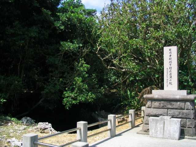 奥まったところに建っていた碑。「有川中将以下将兵自決の壕」とある。この一帯の慰霊碑建立の想いからすると、やはりこれは"異物"だろう。- 旅行時期