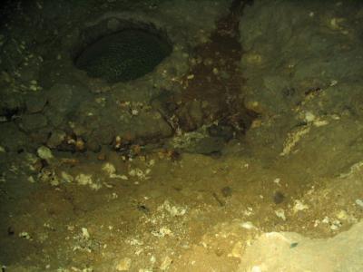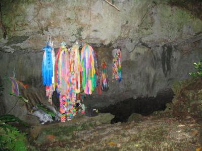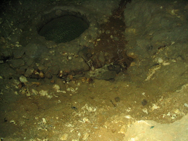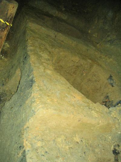 入口はいきなりの縦穴で、かなり急だ。懐中電灯だけの明かりで歩く全長270mはとてつもなく長い。 入ってすぐ、懐中電灯の先に浮かび上がる遺品の数々。