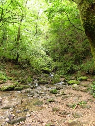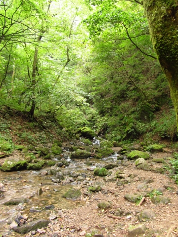 小さなせせらぎに沿ってマイナスイオンをいっぱい浴びながら進む。