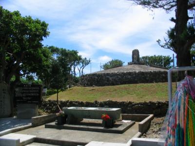 中心となる魂魄の塔は円形・二段構えの石積みに「魂魄」と刻んだサンゴ石が載っているシンプルなもの。