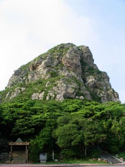 本部の沖合いに浮かぶ平たい小さな島。