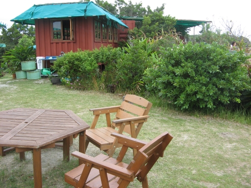 芝生の庭にはブランコやベンチ。トイレにはシャワー!?・・・聞くと、孫のために造ったものだそうで、トイレのシャワーは足洗いようだとか(笑)