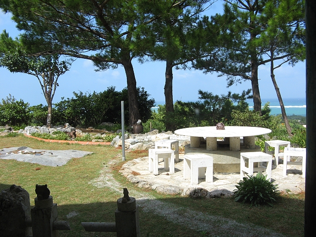 今帰仁の帰りにお茶を飲みに立ち寄り。幹線から入った小高い丘の上に建つが、比較的わかりやすい。