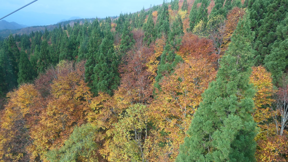 紅葉シーズン終盤、車窓から見事な紅葉を見ることができました。