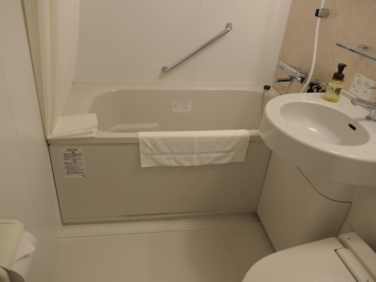 部屋もバスルームも、ちょっと広め。それだけで快適度が随分変わります。アメニティ類もコンセントも必要充分でした。朝食もスタンダードな和食・洋食、それぞれ2種類から選べます。