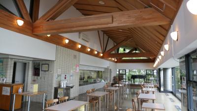 お隣に展望台とプリンス&スカイラインミュウジアム。店内は採光充分で明るい。