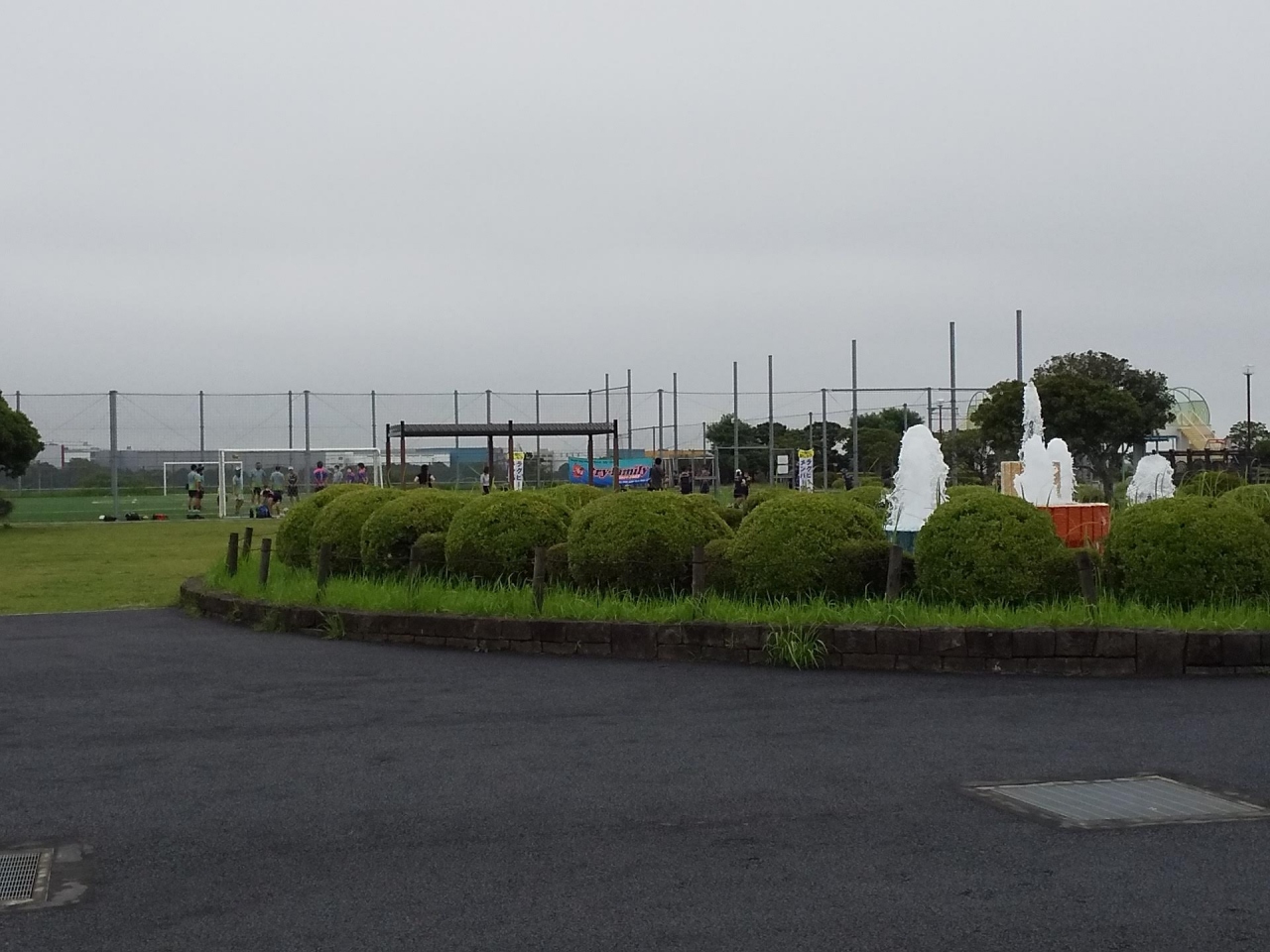 浄水場の上に設置された公園で、限られた敷地の中にテニスコート3面、サッカー場、フットサルコート3面、バスケットゴール、アスレチック遊具とかなり多種の設備がコンパクトにまとまっています。