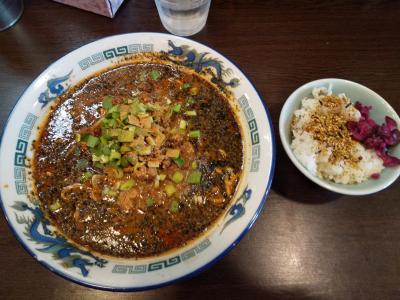 ランチ時は麺類を頼むと、ライス無料(おかわり不可)、珍しいのはカレーも用意されている点。どちらもセルフです。