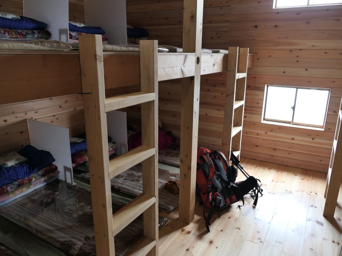 形態としては昔の山小屋、蚕棚のような部屋に雑魚寝、水場・トイレ・食堂は別棟(外)なので都度外に出る必要があります。談話室のような共用スペースもほぼないに等しい。