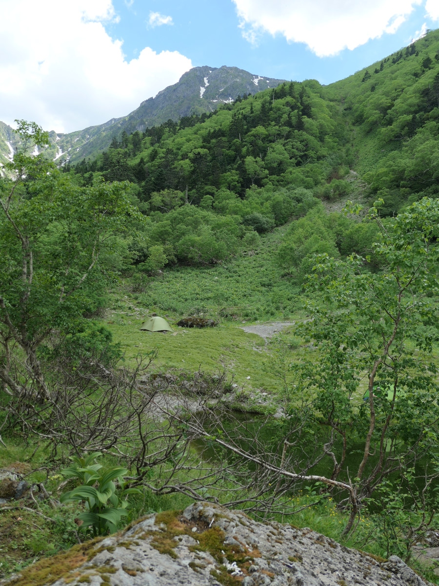 大休止に適した位置とロケーション、見上げる北岳の姿もまた良しです。