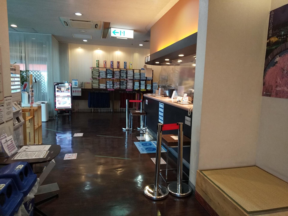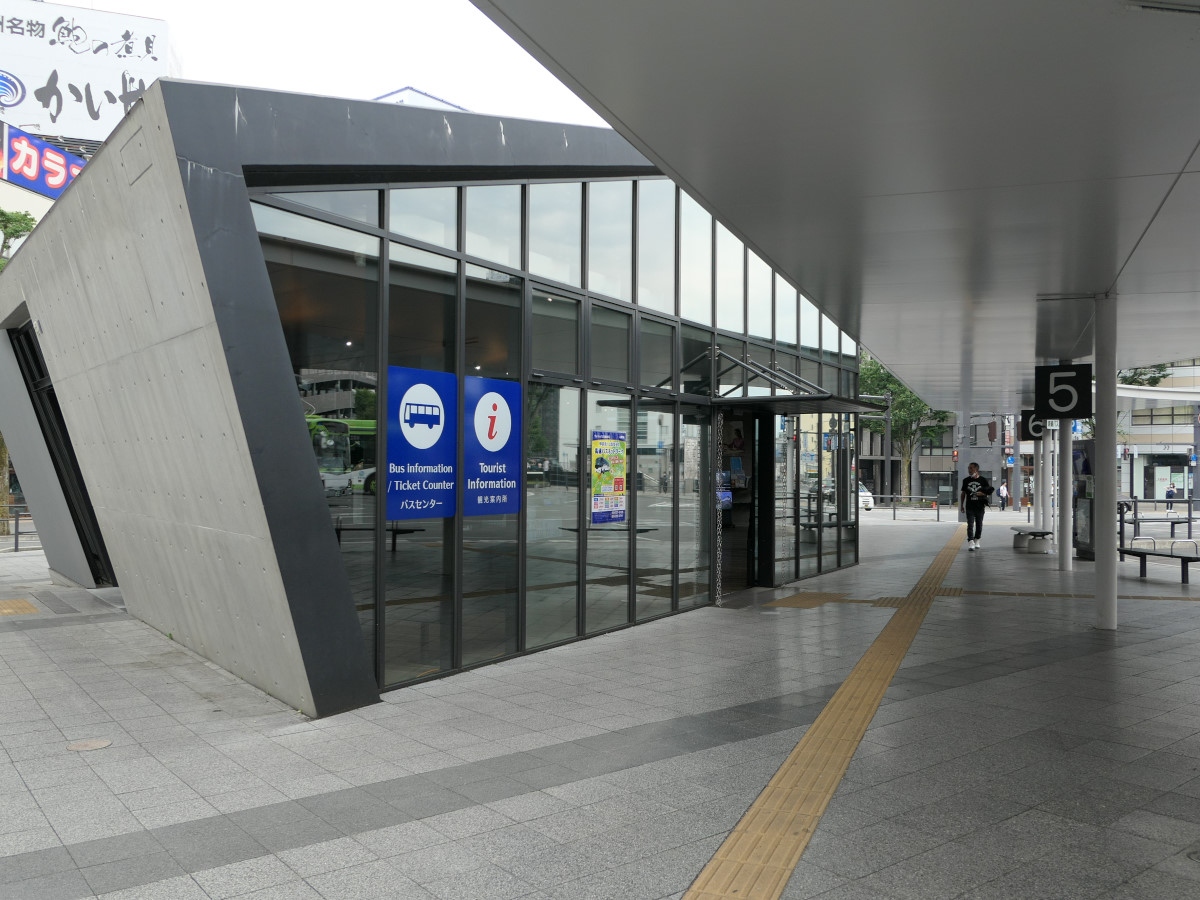建物1階はバスチケット売り場とトイレ、給水場。2階がインフォメーションセンターで有人カウンターもあります。広く清潔でテーブル・椅子も複数用意されているので、小休止と荷物整理には最適です。